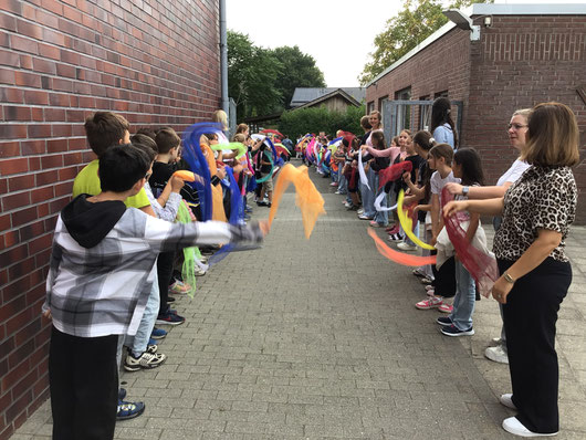 Der Tag startete mit einem feierlichen Gottesdienst in der St. Joseph Kirche. Anschließend wurden die neuen Erstklässlerinnen und Erstklässler mit einem bunten Spalier herzlich an der Schule empfangen. Die Kinder der vierten Klassen begrüßten die Neulinge mit einem fröhlichen Willkommenslied.